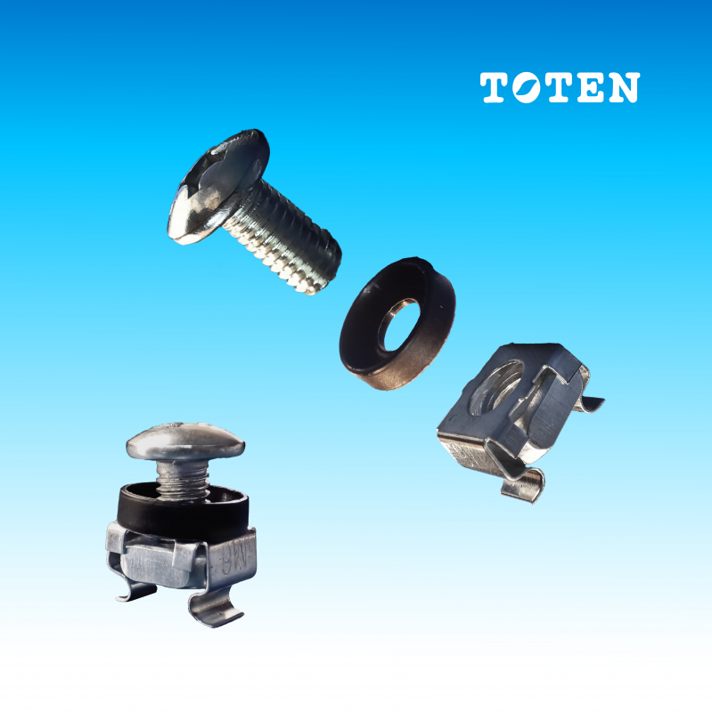 Pernos y Tuerca enjaulada M6 TOTEN SA.5202.0100 está diseñado para montaje seguro de equipos en racks de 19”. Brinda una sujeción firme y confiable en estructuras metálicas.